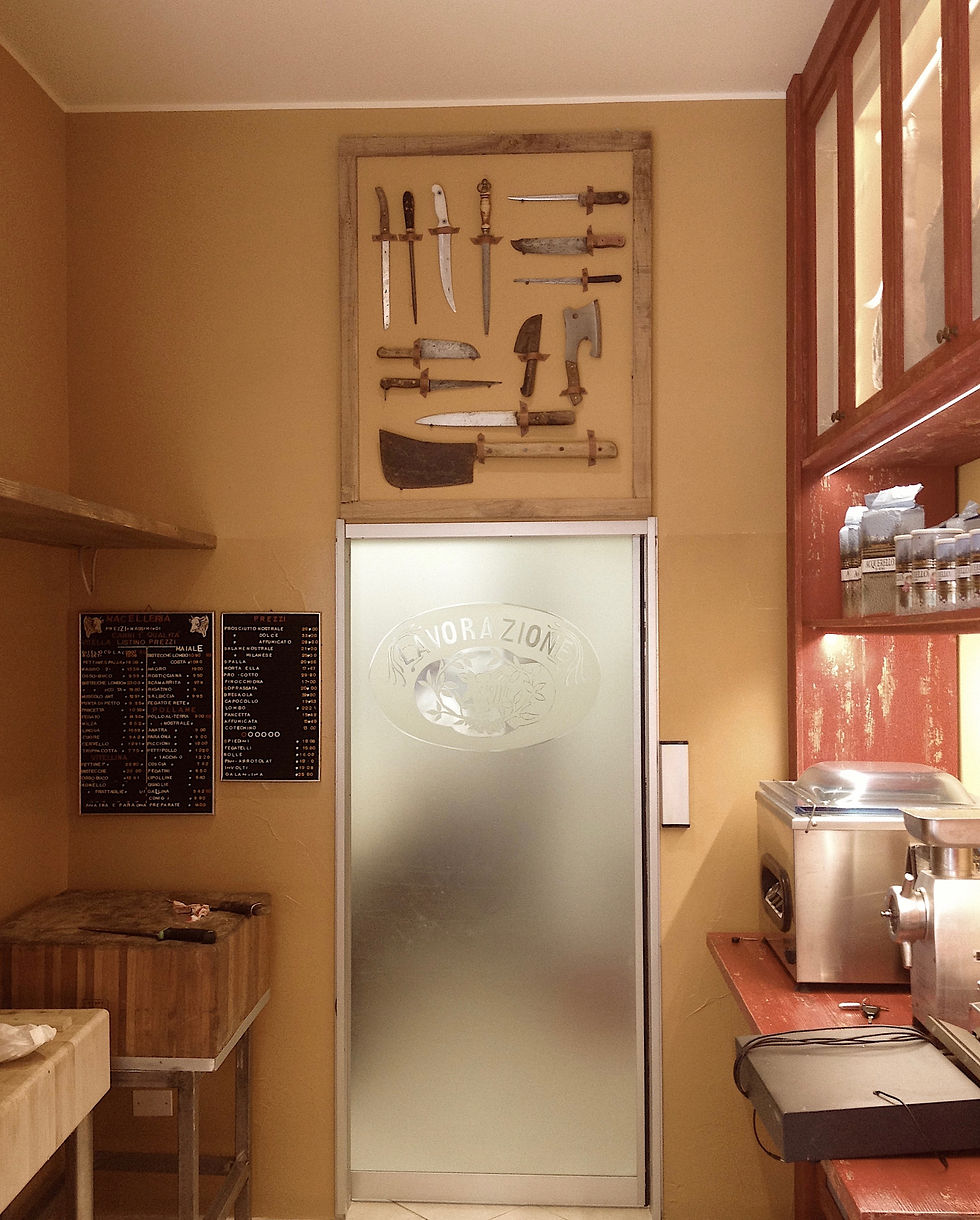 Nel cuore della Toscana, famosa anche per la bistecca Fiorentina, la macelleria è un luogo di culto. L'utilizzo di legno naturale e invecchiato trasformano uno spazio freddo in un luogo attraente.